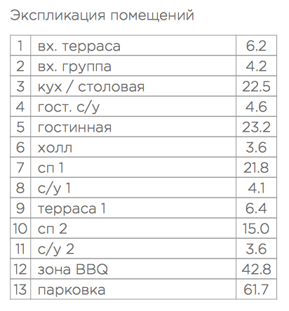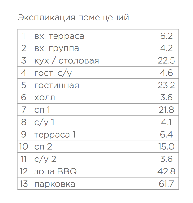 Здание рассчитано на семью до 6 человек, со всеми необходимыми для современного человека удобствами. Планировочное решение жилой среды создано с учетом разделения общественной (шумной) зоны и спальных. Все пространство взаимосвязано обилием террас и воздушных коридоров между объемами. Эргономика перемещения продуманна на все возрастные категории + мы учли возможность проживания представителя маломобильных групп. Иными словами, представленный дом подойдёт абсолютно любой семье!